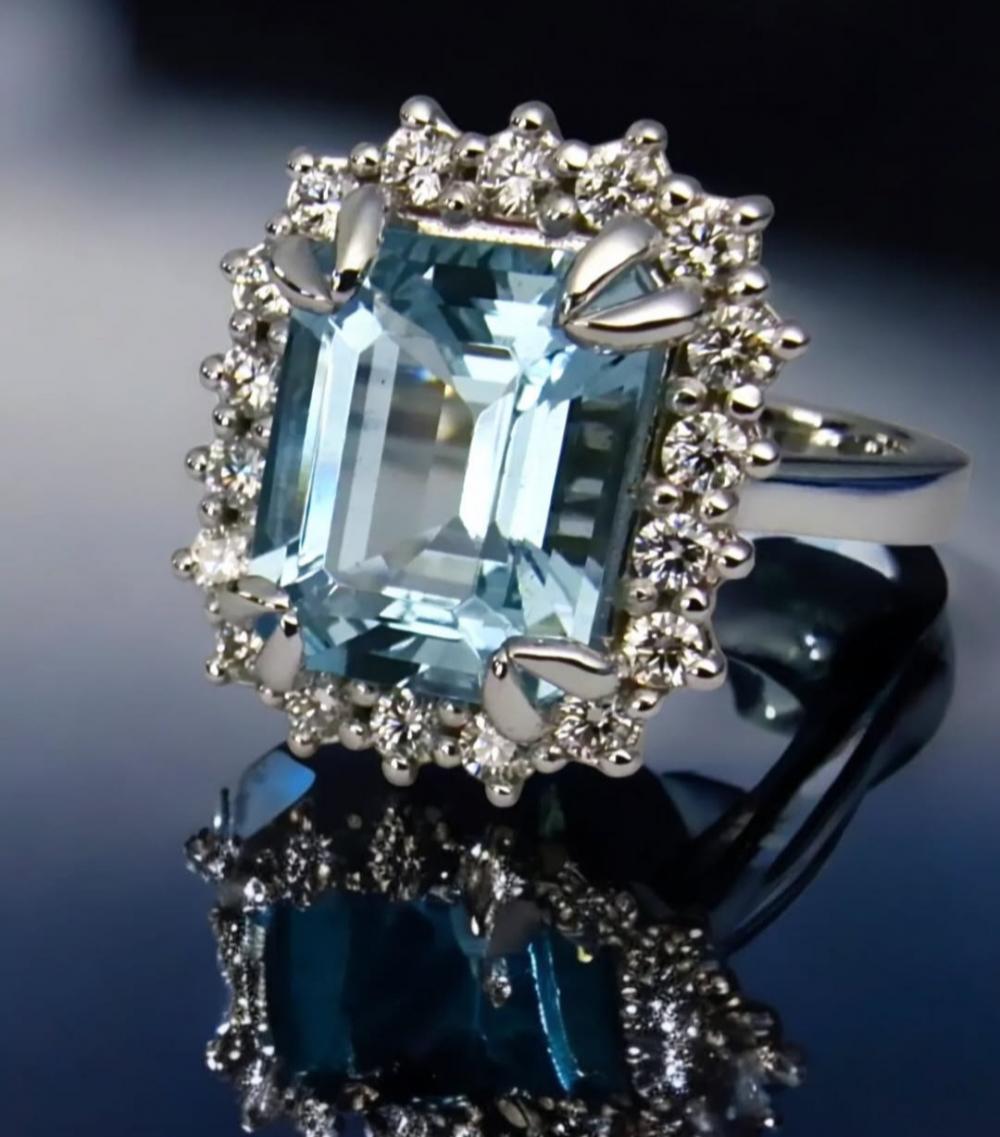 Anello in oro bianco titolo 750 mm con gemme naturali (acquamarina e diamanti) Anello corredato da Certificato Gemmologico...