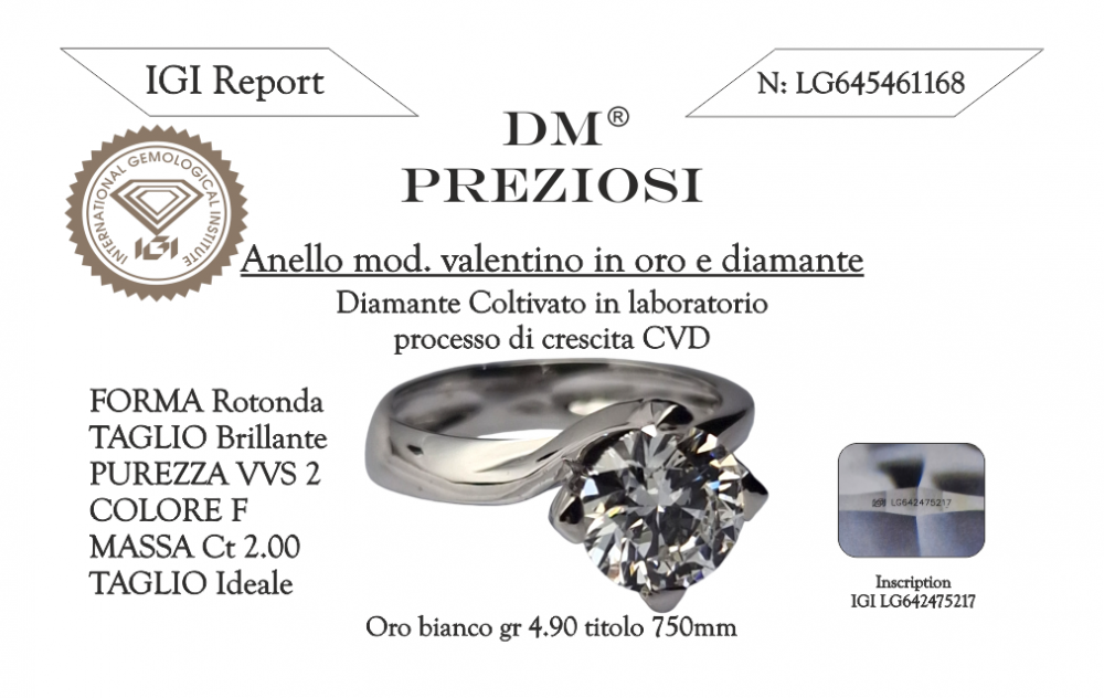 I diamanti sintetici da laboratorio (Lab-Grown Diamonds) sono diamanti creati dall′uomo accresciuti in un ambiente artificiale. La composizione chimica e le proprieta′ fisiche ed ottiche sono identiche al naturale, pertanto la durezza la densita′ l′indice di rifrazione la dispersione e la composizione chimica sono identiche al diamante naturale. É fatto di carbonio cristallizzato in una struttura cubica, proprio come I diamanti estratti in miniera formatisi miliardi di anni fa nelle profondità della Terra. I processi principali di produzione dei diamanti sintetici attualmente sono due: -HPHT (Higt Pressure Higt Temperature) -CVD (Chemical Vapor Deposition). I diamanti creati in laboratorio stanno diventando sempre più popolari grazie alla produzione etica e rispetto dell′ambiente. Una volta tagliati e lucidati, sono indistinguibili dalle loro controparti naturali, senza l′esame di esperti qualificati che utilizzano strumenti sofisticati. Questi diamanti vengono classificati utilizzando le stesse 4C dei diamanti naturali: carati, colore, purezza e taglio. Questo garantisce che ogni diamante creato in laboratorio mantenga gli standard di eccellenza associati alle pietre naturali estratte dalla Terra. I diamanti sintetici costano fino al 70% in meno rispetto a quelli naturali di pari qualita′.I diamanti lab-grown sono la nuova frontiera del lusso diamanti per ogni desiderio perfetti, etici, accessibili, alla portata di tutti. Il fascino del diamante a un pubblico piu′ ampio, senza compromessi su bellezza e qualita′.